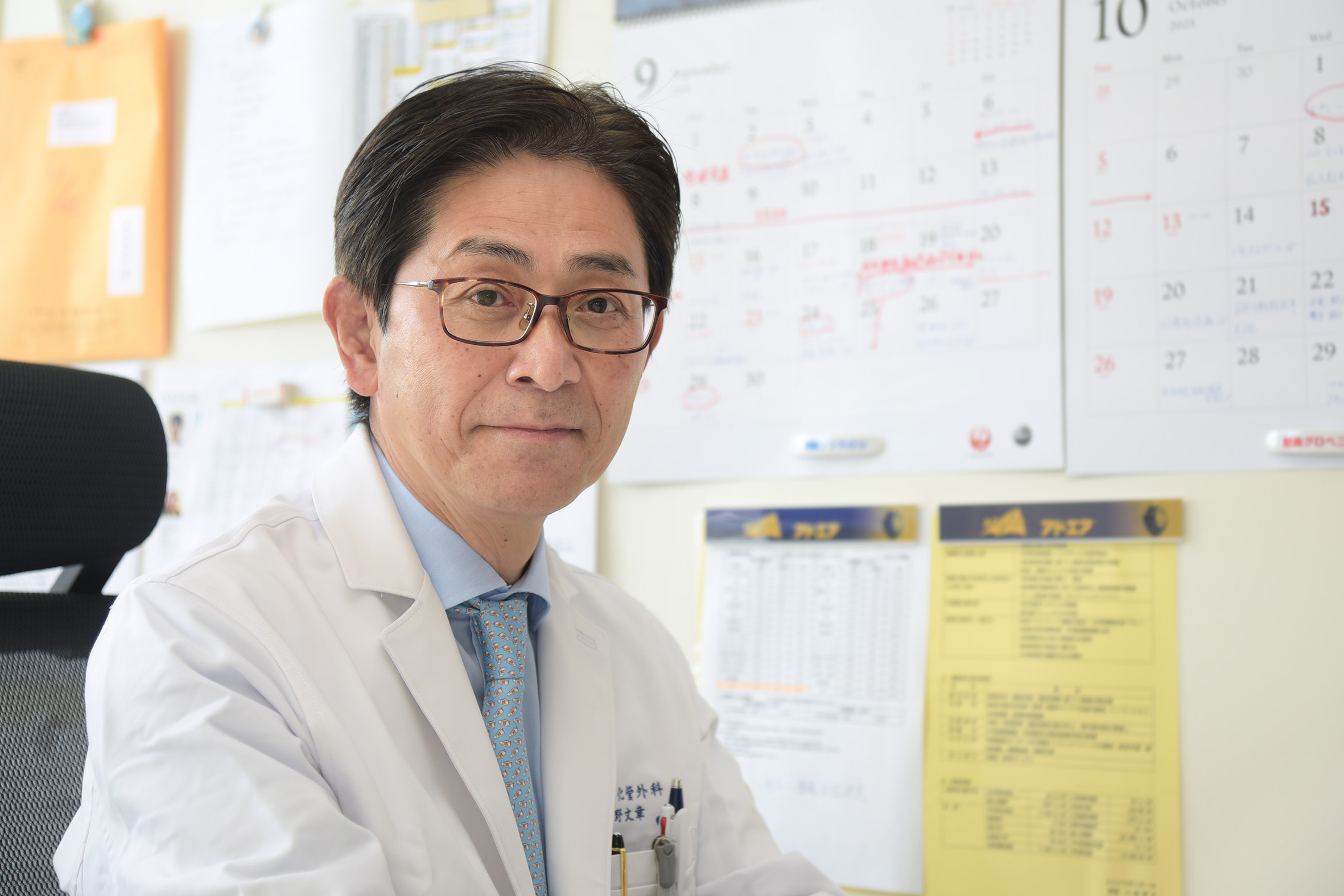 私はこれまで、食道・胃などの「上部消化管外科」を専門に、がん(悪性疾患)の手術だけでなく、日常生活を大きく妨げる良性疾患の手術にも数多く携わってきました。食べること、飲み込むことは毎日の生活の基本です。その大切な機能を守り、症状の改善を通じて患者さんが安心して暮らせるよう、診断から手術、術後のフォローまで丁寧に行っています。